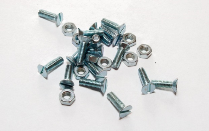 Sağlam bağlantılar ve güvenli montaj için yüksek kaliteli çelikten üretilmiş vida ve somun seti.